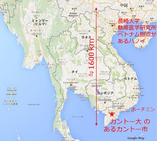 ベトナムのカントー大学はベトナム南部のメコンデルタに位置する総合大学で、長崎大学とは2012年に学術交流協定を結んでおり、カントー大学の本部には長崎大学の交流推進室が設けられています。現在はJICAの円借款「カントー大学強化事業」(2015年7月貸付契約調印)、カントー大学強化附帯プロジェクトと連携して、様々な研究を展開しています。