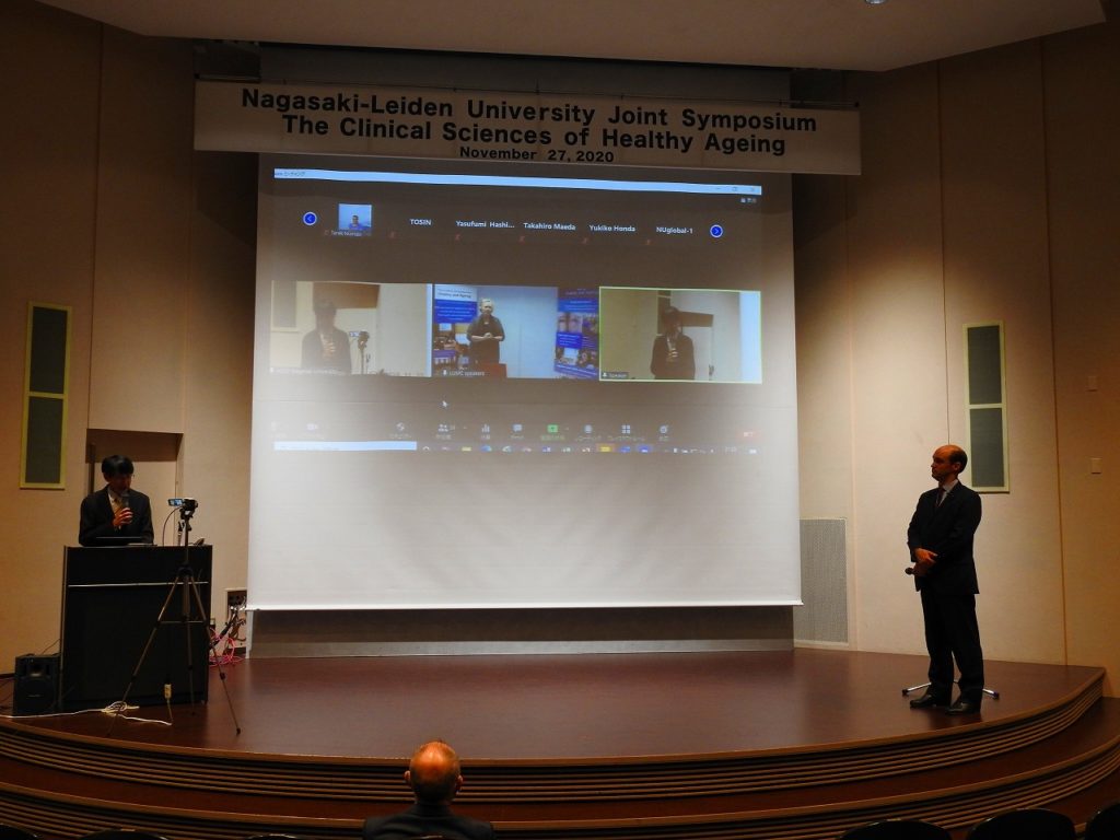 The online symposium on the Clinical Sciences of Healthy Ageing, co-organized by Leiden University Medical Center and Nagasaki University’s School of Medicine and Graduate School of Biomedical Sciences, was held on 27 November. Approximately 100 people participated in Ryojun Hall and through online.