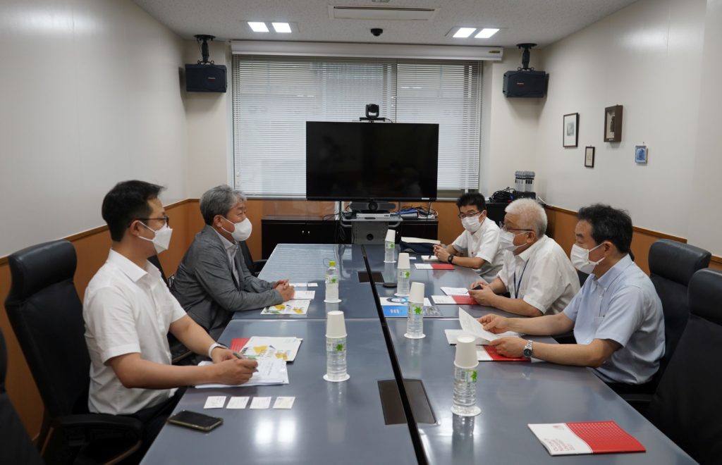 2022年7月21日2022年8月17日トピックス、研究教育活動 韓国・釜慶大学校国際交流本部長が本学を訪問 2022年7月20日、韓国・釜慶大学校より、尹一(ユン イル)国際交流本部長が長崎大学を訪問されました。本学からは、夛田彰秀学長特別補佐(国際交流担当)及び武田重信水産・環境科学総合研究科長はじめ関係教員が参加し、長年の協力関係について双方から謝意が述べられました。また、文部科学省「大学の世界展開力強化事業」に採択されている「持続可能なアジアの水産と海洋環境を実現する国際協働人材養成プログラム」に、協力して取り組んでいくことを確認しました。