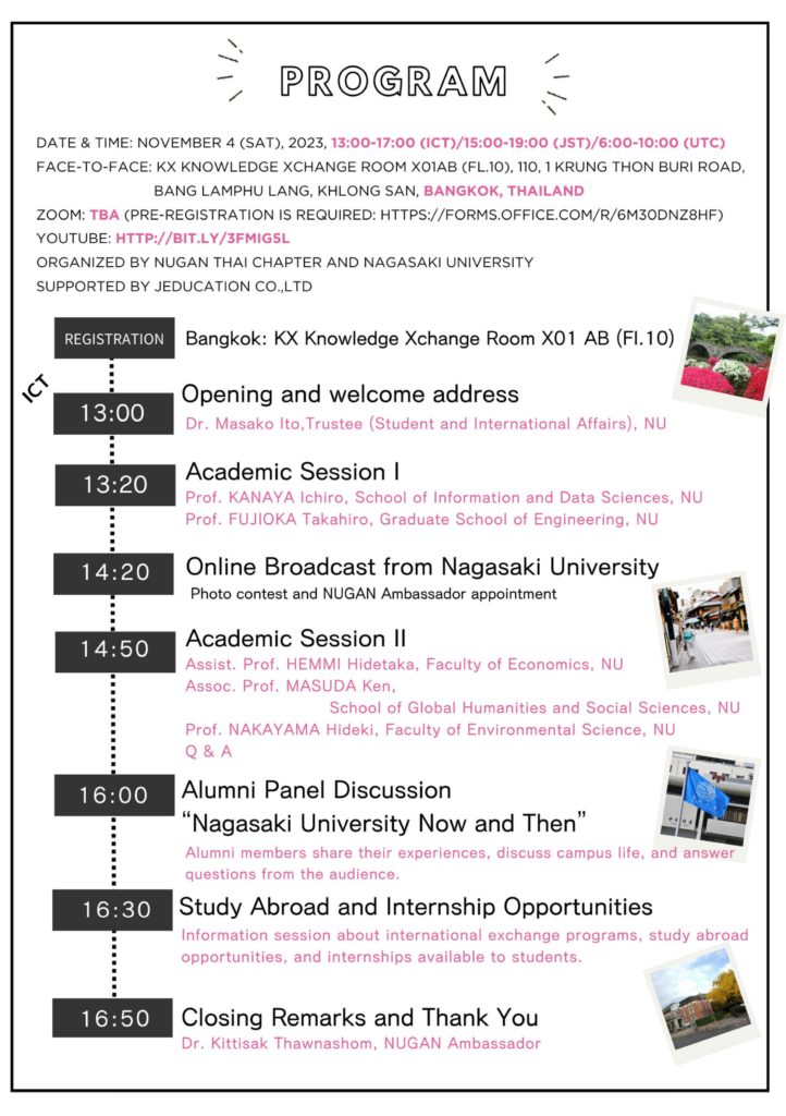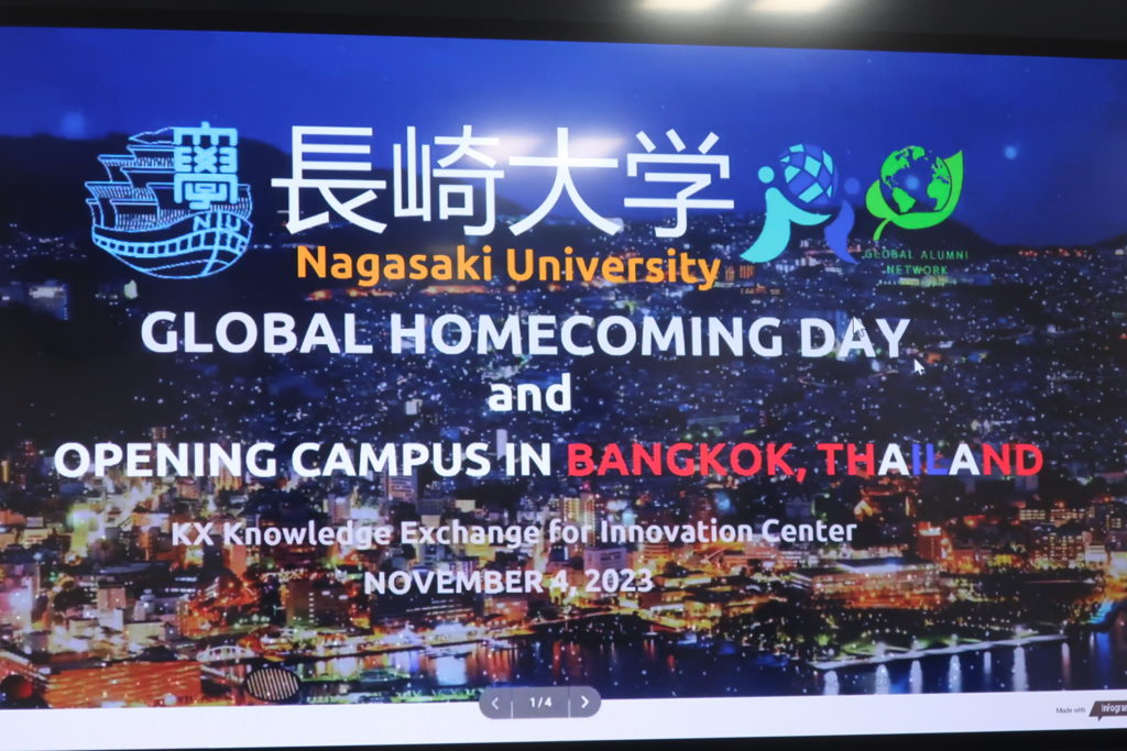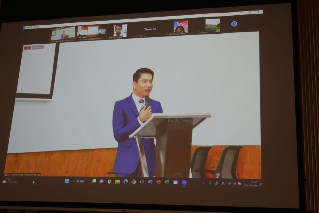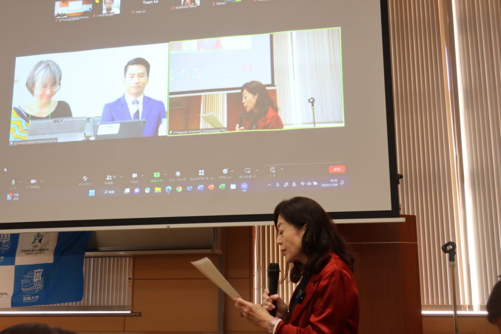 就任式は、長崎大学ホームカミングデーの日に合わせて、NU Global Homecoming Day in Bangkok, Thailandをオンラインで繋ぎ開催されました。