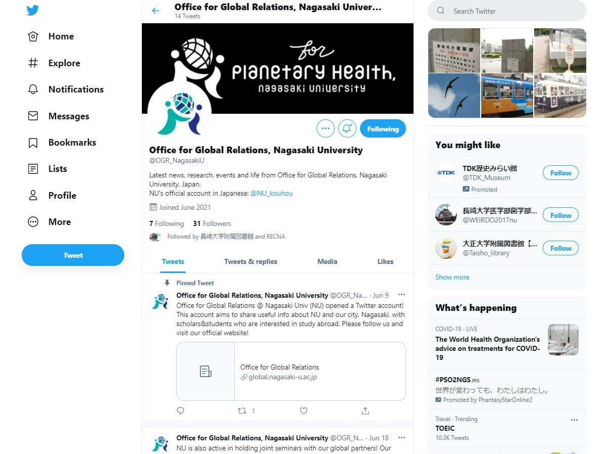 長崎大学グローバル連携機構のTwitterとFacebookを開設しました